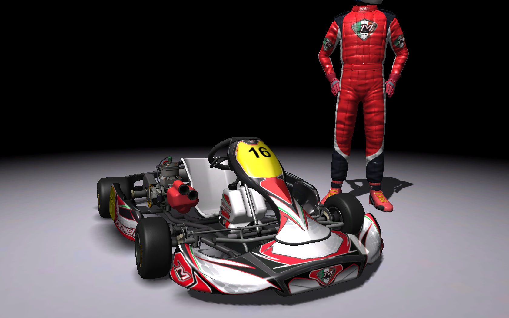 The suit looks real good in my opinion, but the kart could be better. Also, the suit is almost entirely black from the back side so don't be scared, it has to be like that ( weird design by maranello this year.)